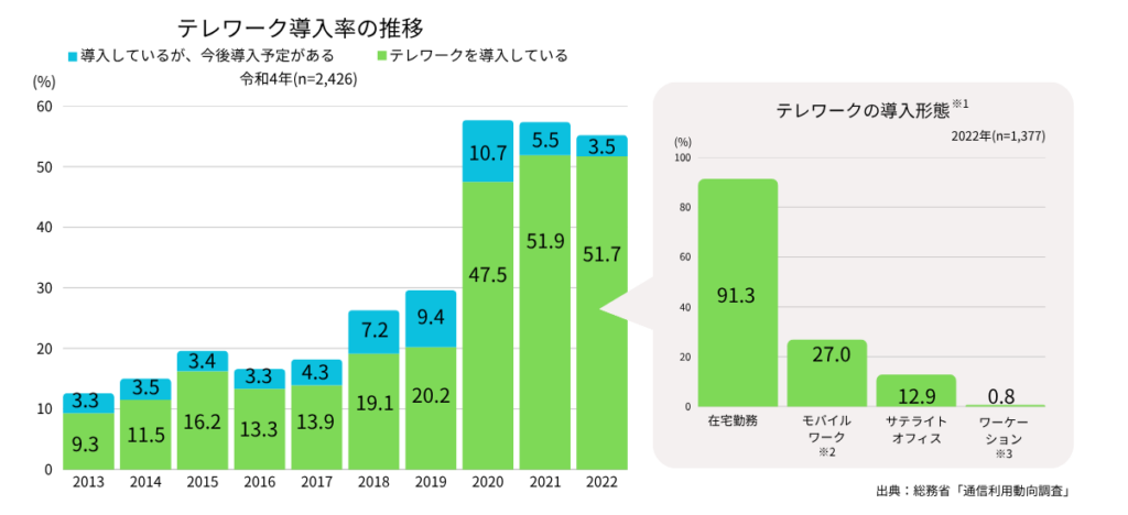 出典:総務省|令和5年版 情報通信白書|テレワーク・オンライン会議