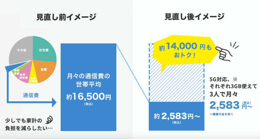 毎月かかる携帯料金が想像以上に安くなったので本当に感謝です。