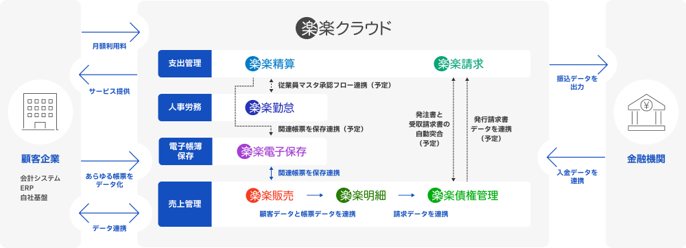さらに、各サービスを連携させることでデータがシームレスにつながり、バックオフィス全体の業務フローを最適化します。
