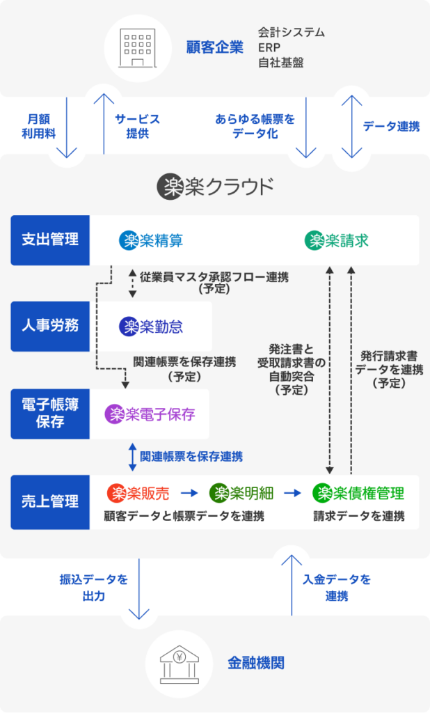 「楽楽クラウド」は、経費精算、請求書発行、販売管理、勤怠管理など、企業のバックオフィス業務を効率化するクラウドサービスの総称です。